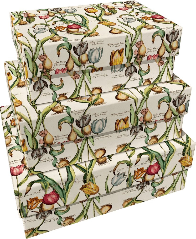 SET 3 CAJAS CARTÓN 600GR HECHAS A MANO TULIPANES