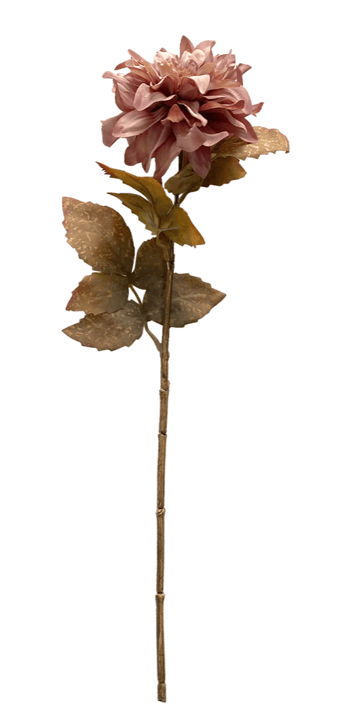 dalia marrón 60 cm, con hojas y tallo de color dorado.