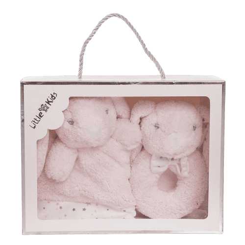 dou dou+sonajero conejito rosa en caja de regalo